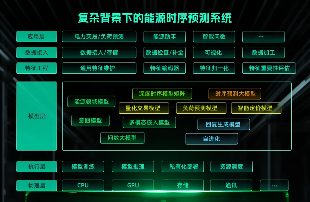 针对能源行业AI应用洼地,朗新独创性地构建了“复杂背景下的能源时序预测系统”,打造了一套能够自主学习、灵活适应及高效协同的AI驱动能源管理智能体,能够实现能源行业的智能预测,从而应对日益复杂的能源供需挑战,推动能源利用向更加绿色、高效、可持续的方向发展。