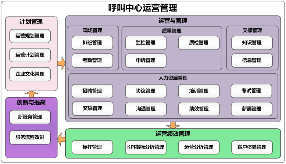 该产品针对电力行业特点,以提升电力呼叫中心管理效率、降低运营成本为目标,以计划与流程控制为主线,通过服务标准化流程设计,有效的执行过程管理和科学运营评估及绩效考核,帮助建立人、财、物、事科学完整的呼叫中心运营管理体系。产品依据PDCA管理理论,参照呼叫中心能力成熟度模型CC-CMM,将服务标准化、平衡记分卡等先进的管理方法和工具应用到电力呼叫中心,集规划与计划管理、呼叫中心人力资源管理、现场管理、质量管理、支撑管理、运营绩效管理、集成引擎及行业插件等呼叫中心运营管理业务组件为一体