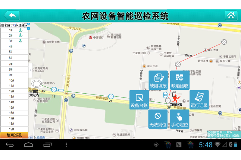 华北电网智能变电巡检系统提供了设备条形码扫描、巡视标准提示、缺陷和运行检测记录实时录入、阈值判断等功能,充分满足现场巡视人员的工作需求,提升了变电巡视工作的质量和效率